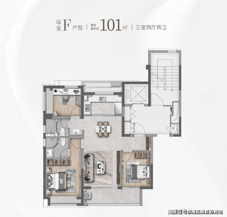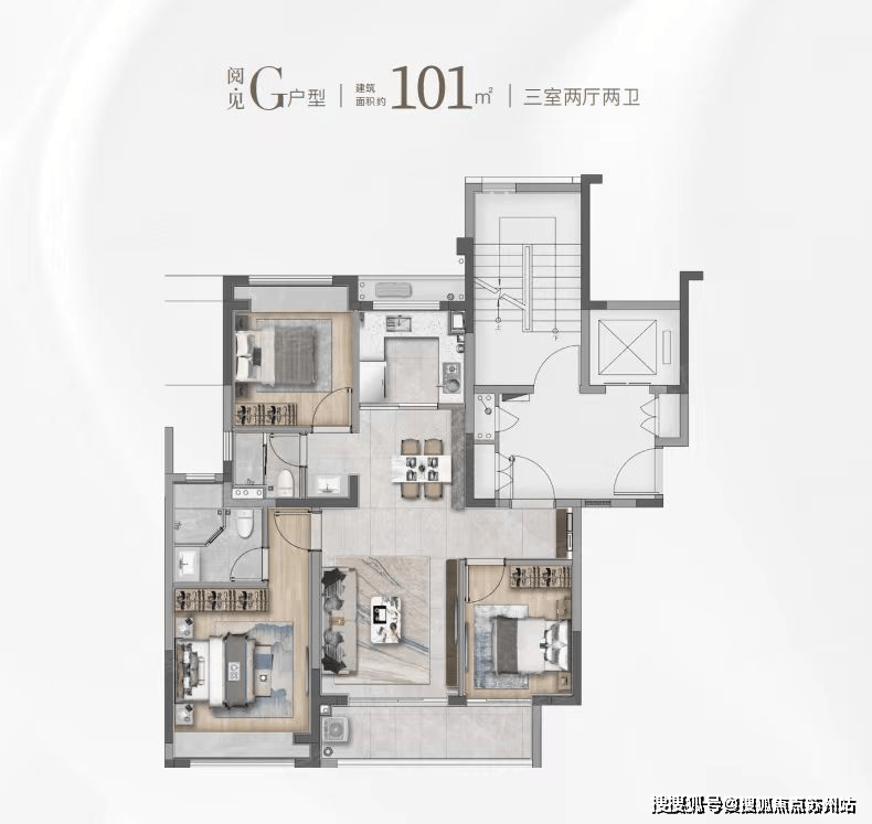 打制建建面积约101㎡的高层户型,
